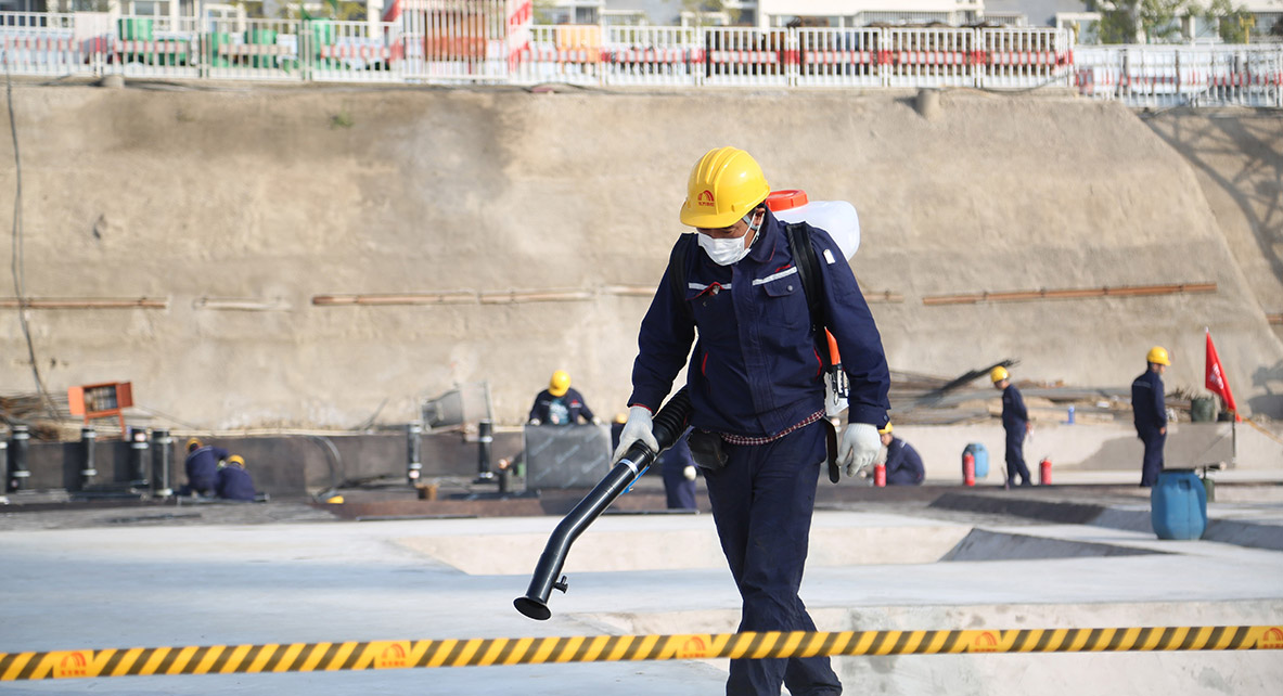 延承歐美主流技術、結合國內工程實踐,精益求精。制定瀝青、高分子卷材、涂料等多種防水材料的標準化施工工藝。普適應用,制作示范樣板,規范數十種細部節點做法,“千人一面”。配備機械化施工工具,提高質量及功效。